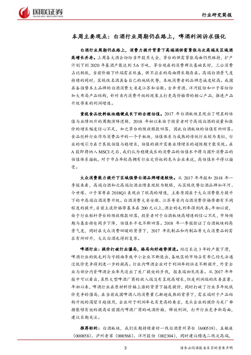 国联证券:食品饮料行业 2018年第20期:白酒行业周期仍在路上,啤酒利润诉求强化.pdf