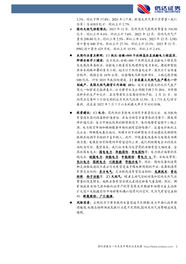 信达证券:公用事业—电力天然气周报:陕北-安徽±800千伏特高压直流输电工程获准,美国天然气生产商计划减产.pdf