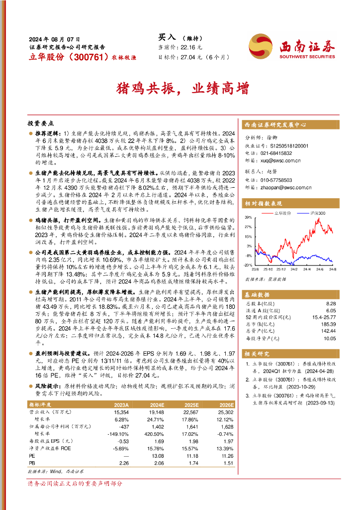 西南证券:立华股份(300761)-猪鸡共振,业绩高增.pdf