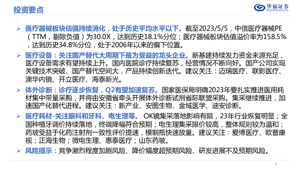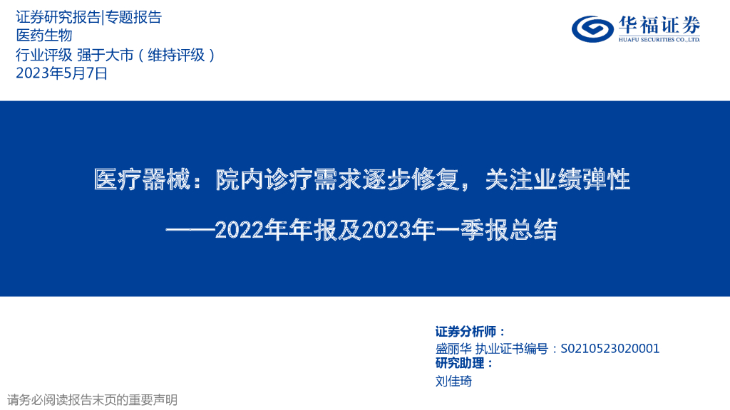 华福证券:医药生物2022年年报及2023年一季报总结:医疗器械:院内诊疗需求逐步修复,关注业绩弹性.pdf