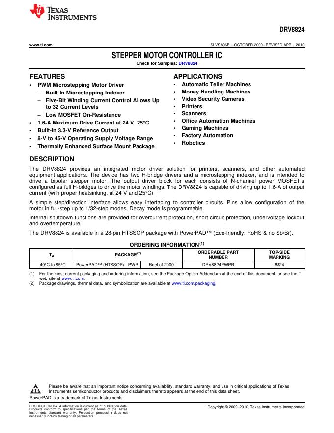TEXAS INSTRUMENTS DRV8824 数据手册.pdf