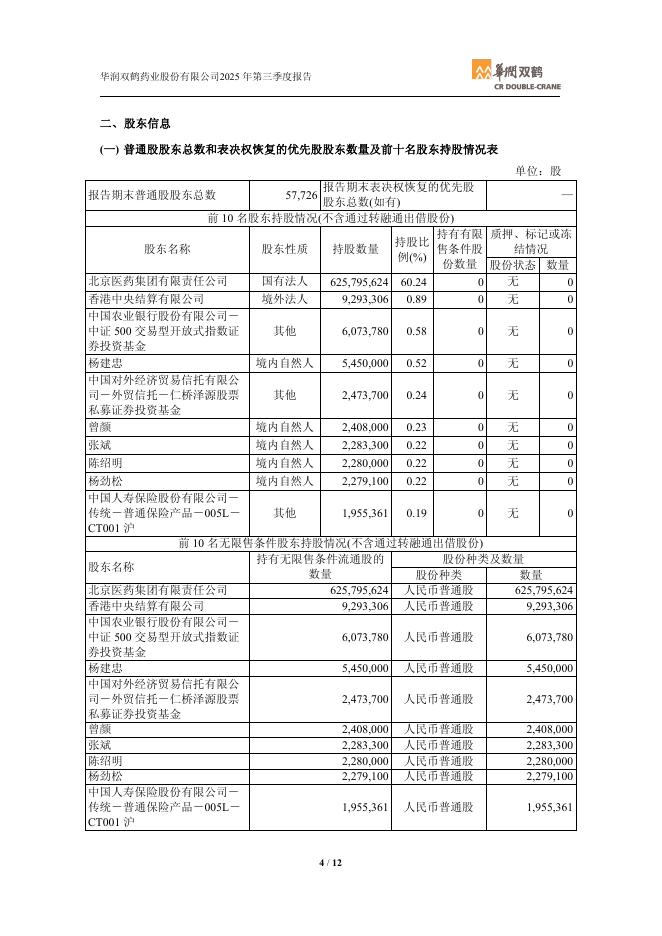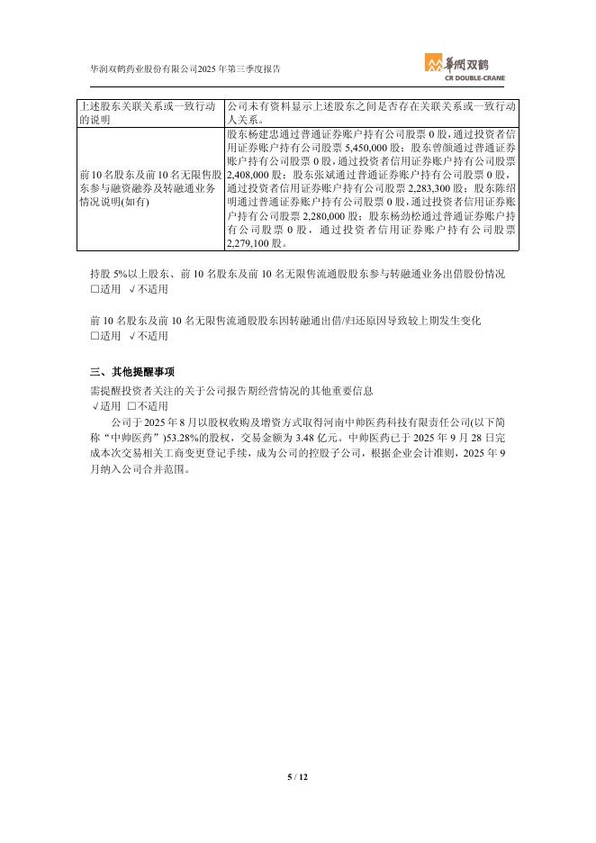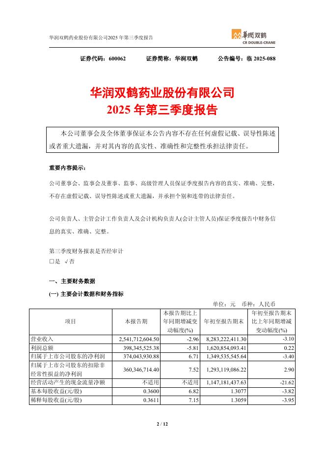 600062-华润双鹤:华润双鹤2025年第三季度报告.pdf