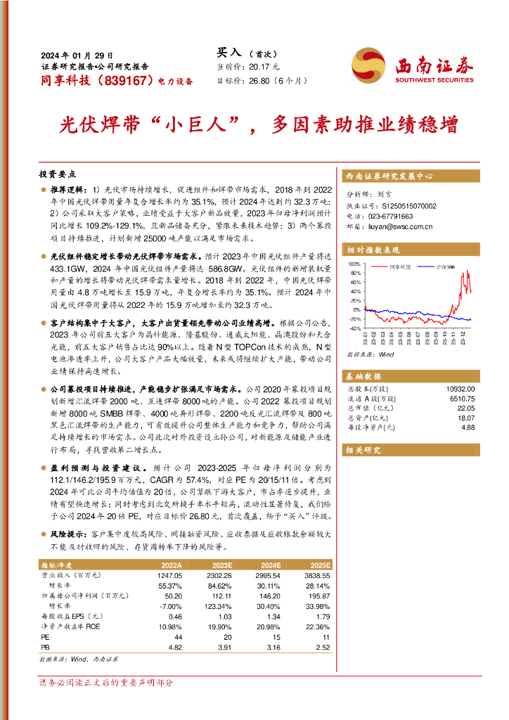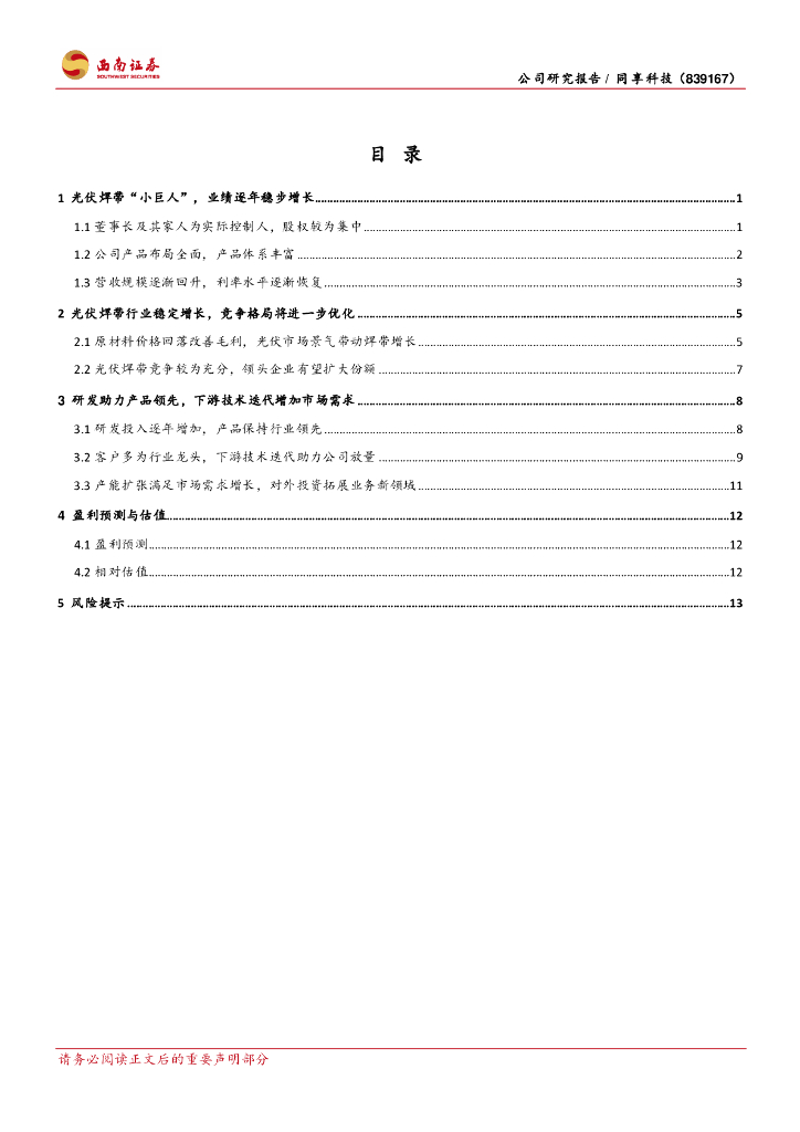 西南证券:同享科技(839167)-光伏焊带“小巨人”,多因素助推业绩稳增.pdf