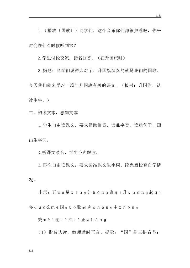 一年级语文(教案1)识字10 升国旗教学设计.doc