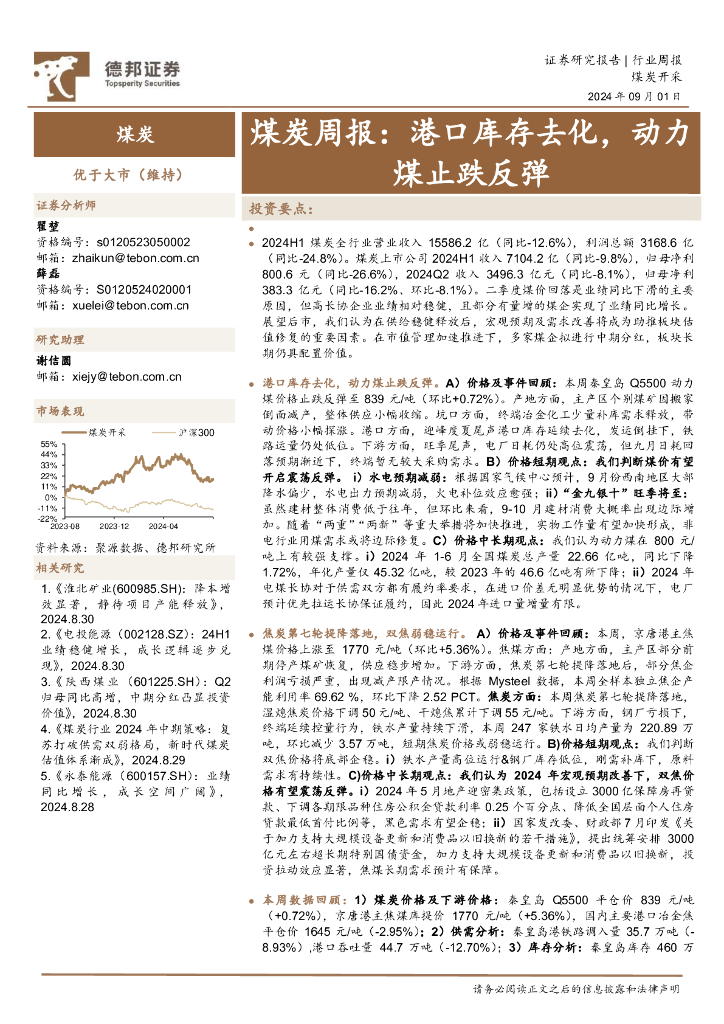 德邦证券:煤炭行业周报:港口库存去化,动力煤止跌反弹.pdf