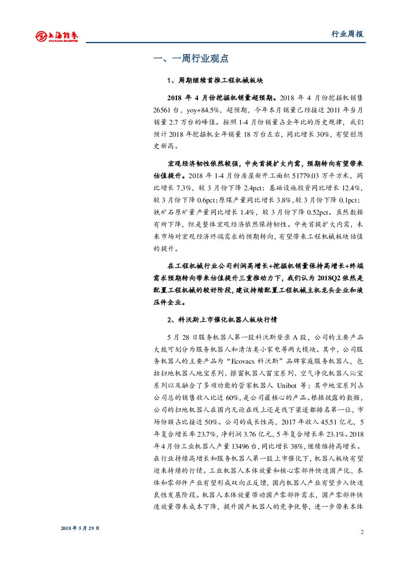 上海证券:机械行业周报:周期继续推荐工程机械,科沃斯上市催化机器人板块行情.pdf