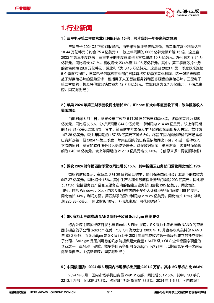 东海证券:电子行业周报:周期回暖、AI驱动海外各科技大厂2024第二季度业绩复苏.pdf