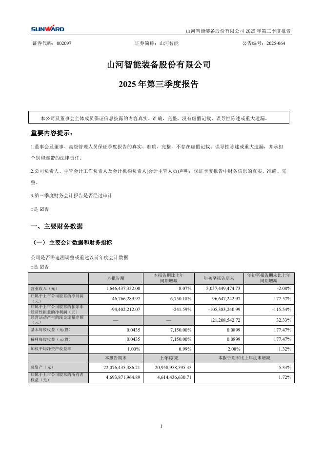 002097-山河智能:2025年三季度报告.pdf
