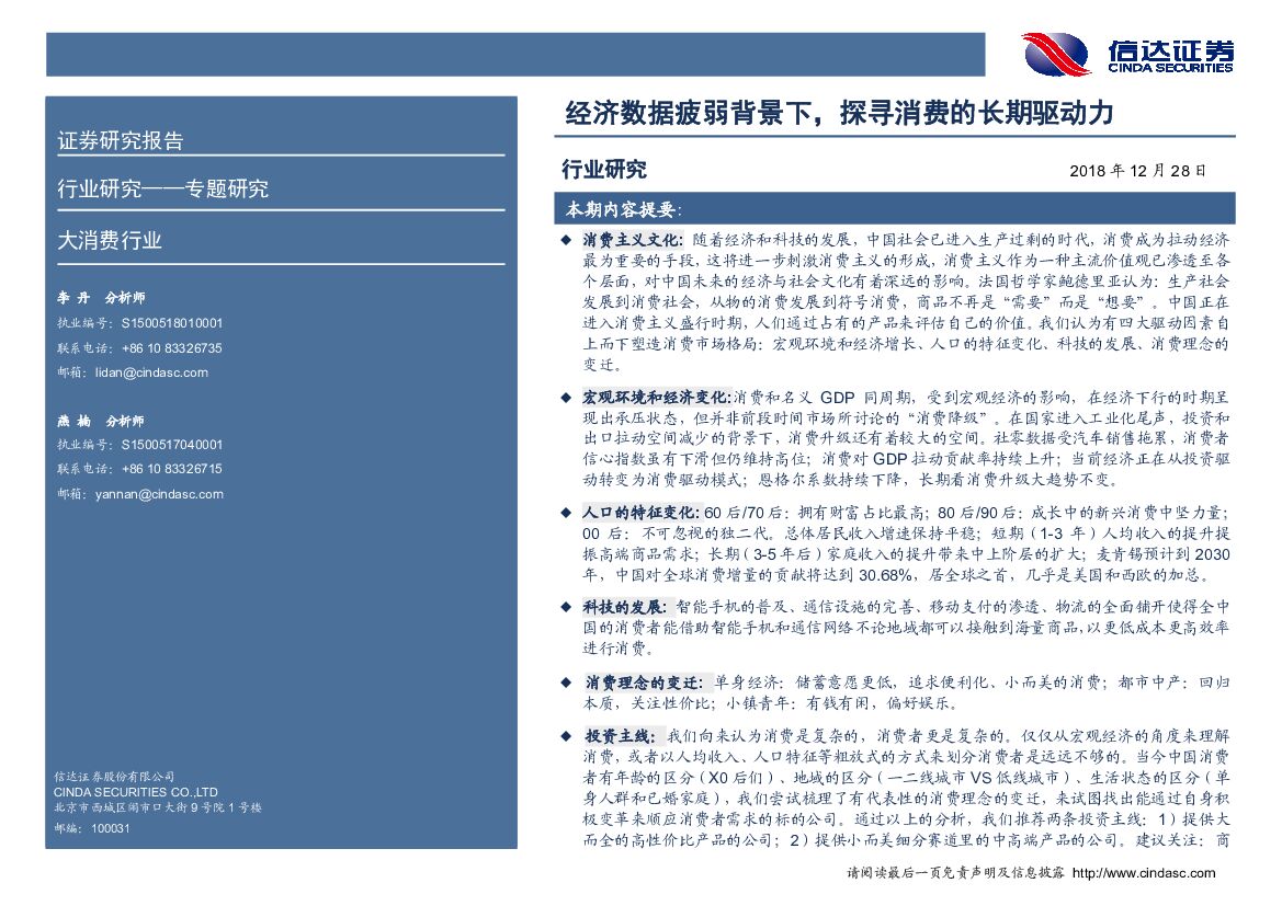 信达证券:大消费行业专题研究:经济数据疲弱背景下,探寻消费的长期驱动力.pdf