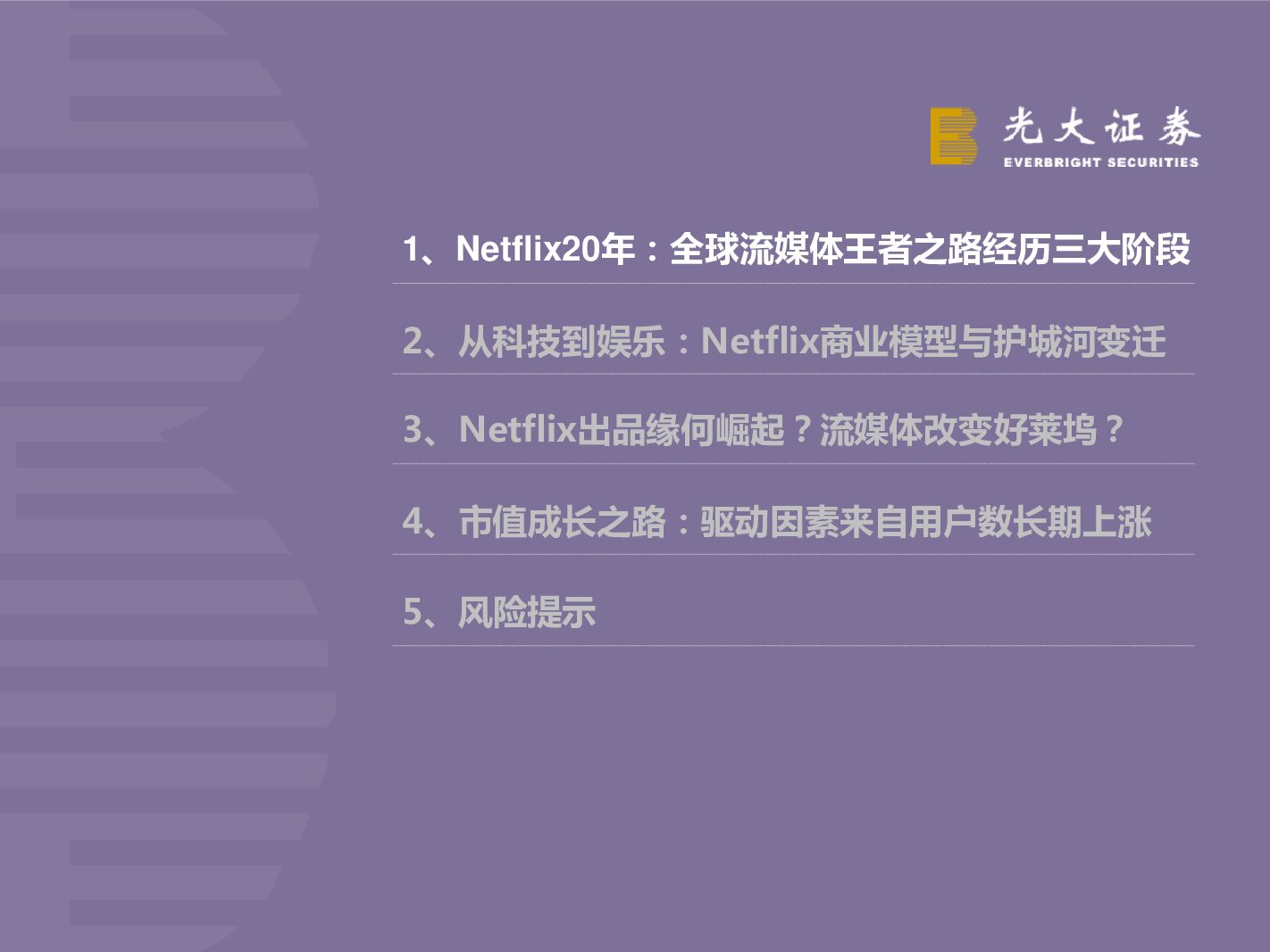 光大证券:Netflix20年商业模型、护城河变迁与市值成长:Netflix20年商业模型、护城河变迁与市值成长?.pdf