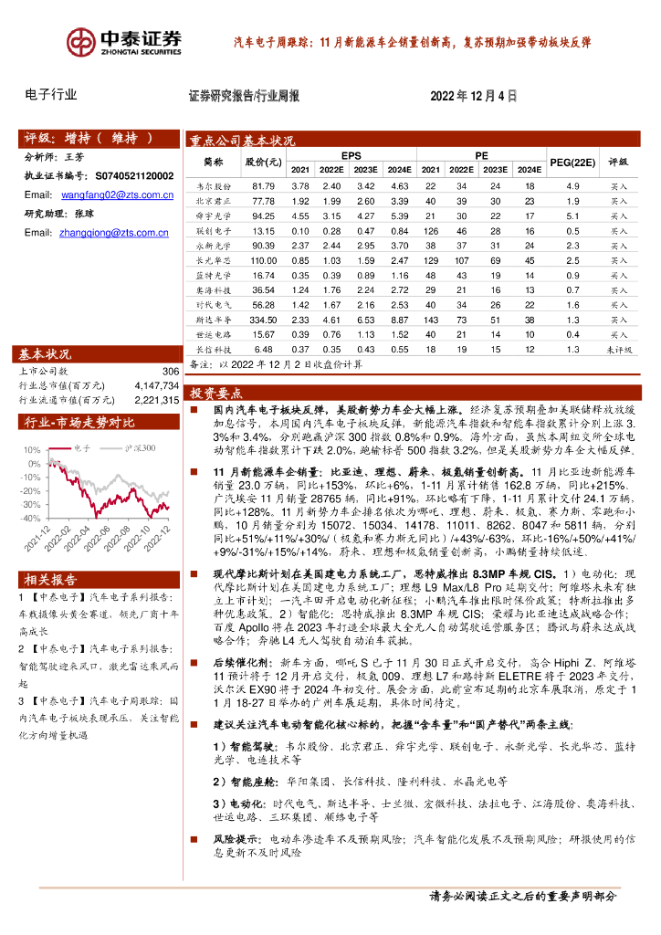 中泰证券:汽车电子周跟踪:11月新能源车企销量创新高,复苏预期加强带动板块反弹.pdf