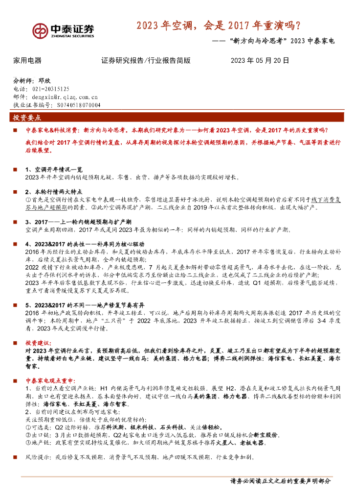 中泰证券:“新方向与冷思考”2023中泰家电:2023年空调,会是2017年重演吗?.pdf
