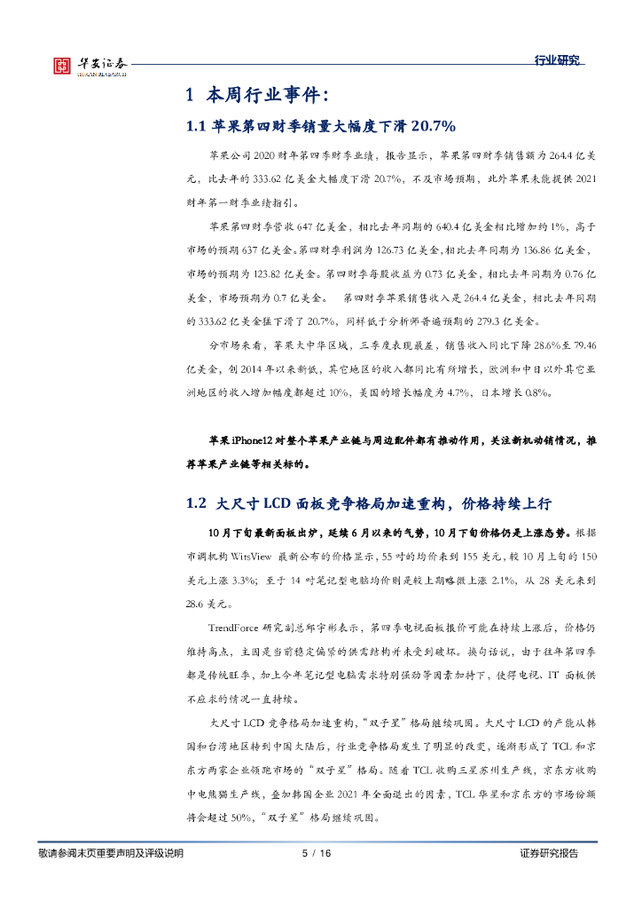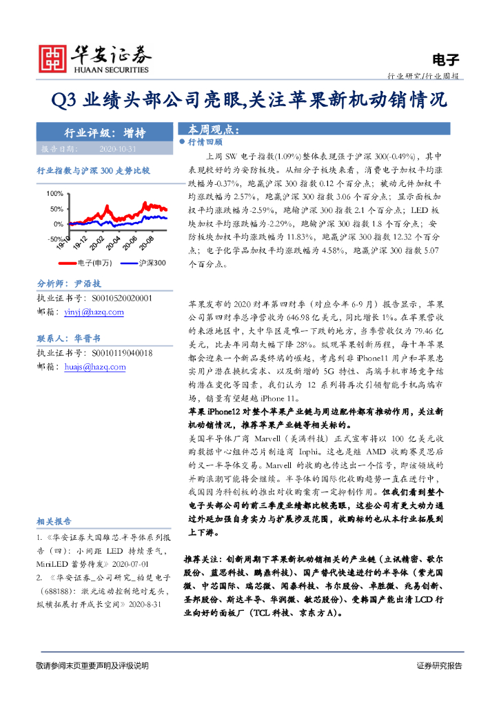 华安证券:电子行业周报:Q3业绩头部公司亮眼,关注苹果新机动销情况.pdf