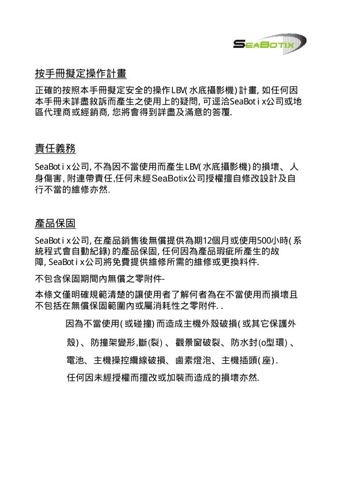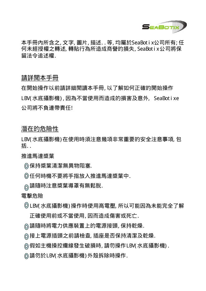 SeaBotix LBV 150B SeaBotix水底遥控摄影机 操作及基本維護手冊.pdf