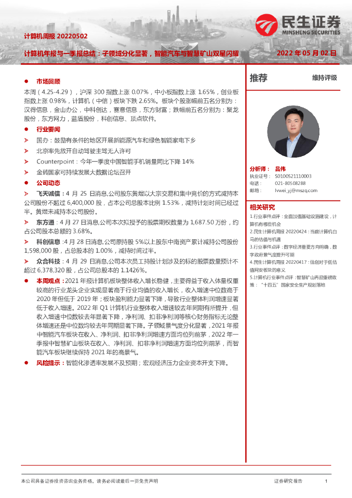 民生证券:计算机年报与一季报总结:子领域分化显著,智能汽车与智慧矿山双星闪耀.pdf