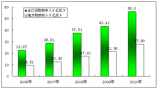 图2 2006年-2010年全市一般预算全口径财政收入和地方财政收入