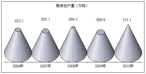 全年粮食播种面积76.9万公顷,比上年增加6.2万公顷,增长8.8%,全年粮食产量达到771.1万吨,比上年增产215.5万吨,增长38.8%,创历史新高。