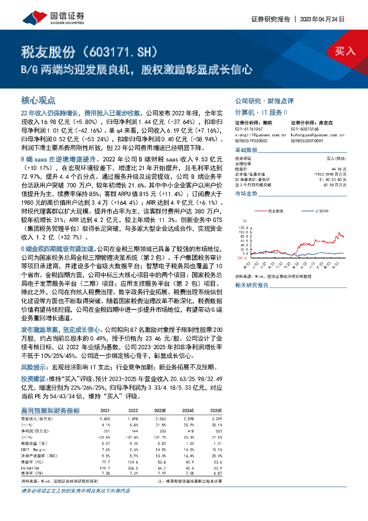 国信证券:税友股份(603171)-B/G两端均迎发展良机,股权激励彰显成长信心.pdf