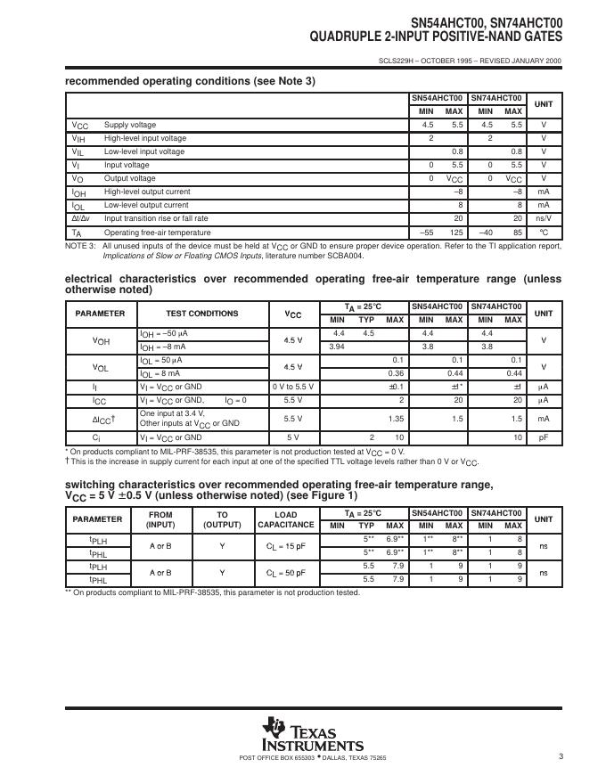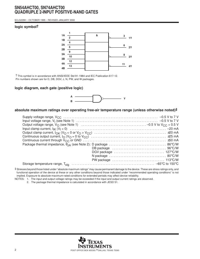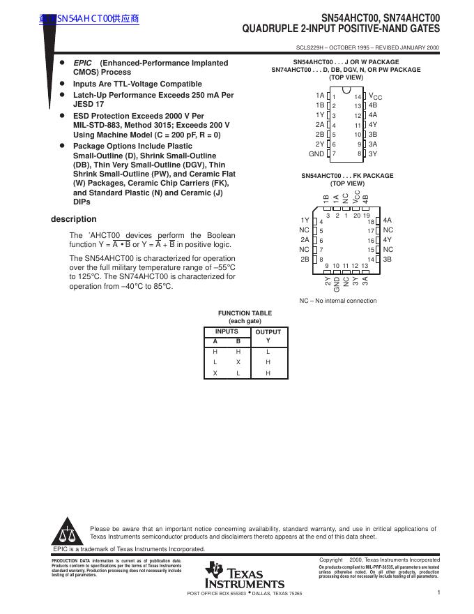TEXAS INSTRUMENTS SN54AHCT00, SN74AHCT00 数据手册.pdf