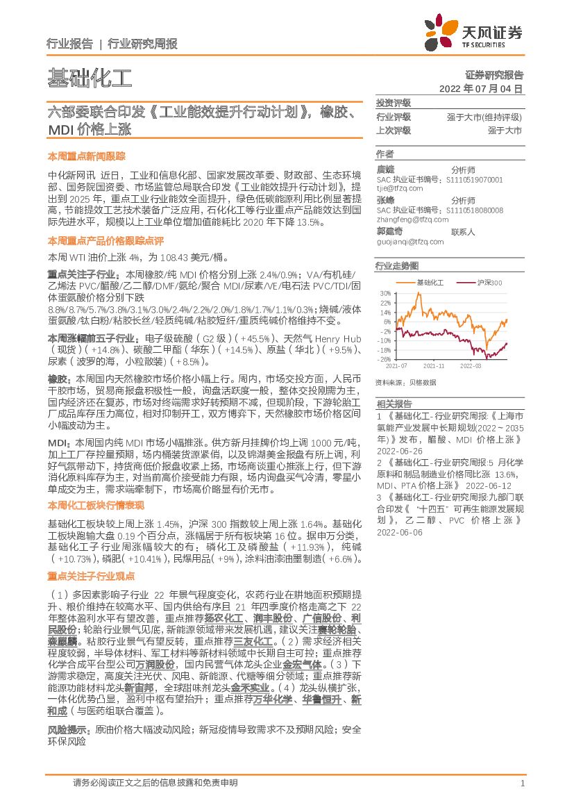 天风证券:基础化工行业研究周报:六部委联合印发《工业能效提升行动计划》,橡胶、MDI价格上涨.pdf