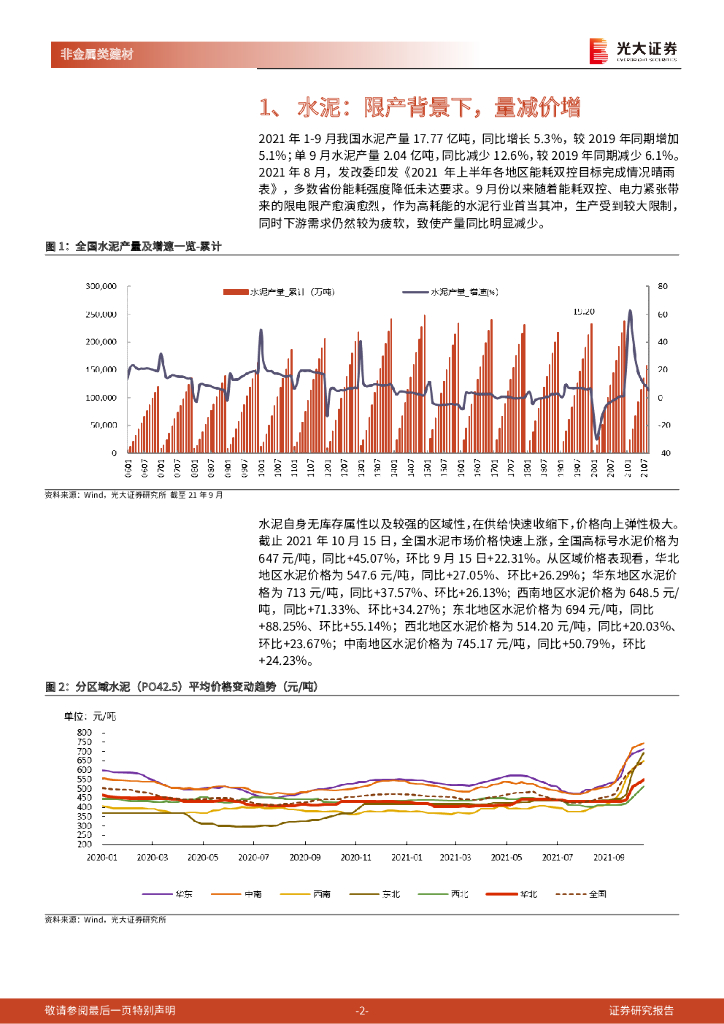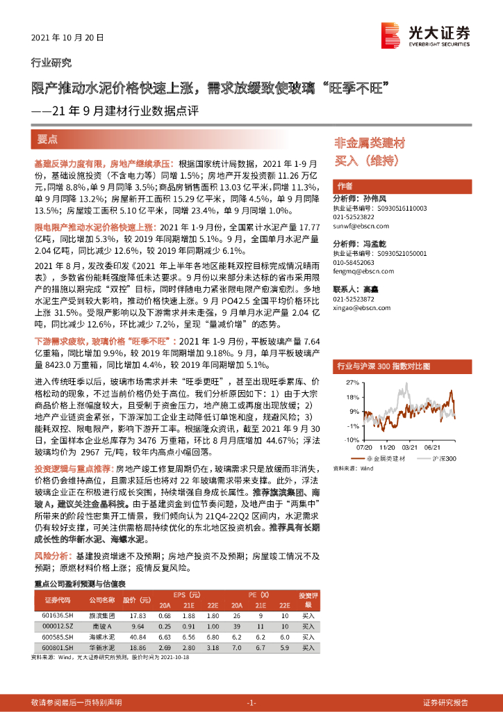 光大证券:21年9月建材行业数据点评:限产推动水泥价格快速上涨,需求放缓致使玻璃“旺季不旺”.pdf