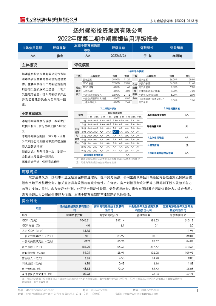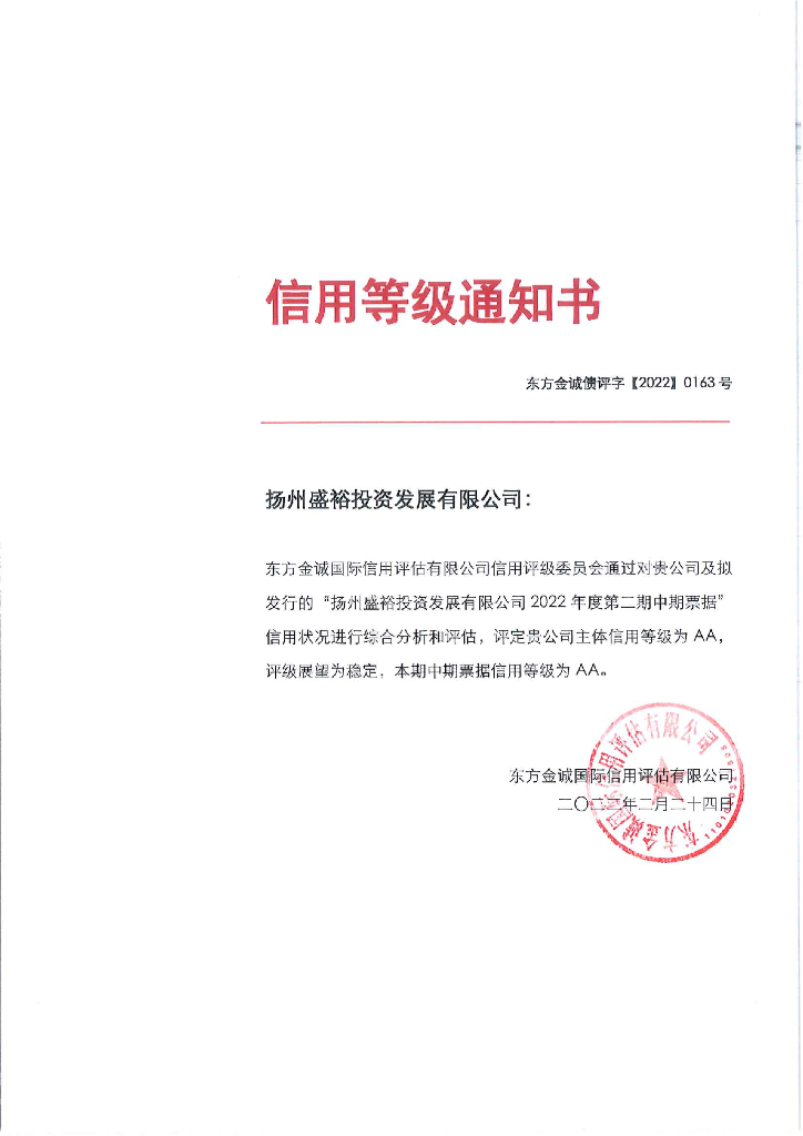 东方金诚:扬州盛裕投资发展有限公司2022年度第二期中期票据评级报告.pdf