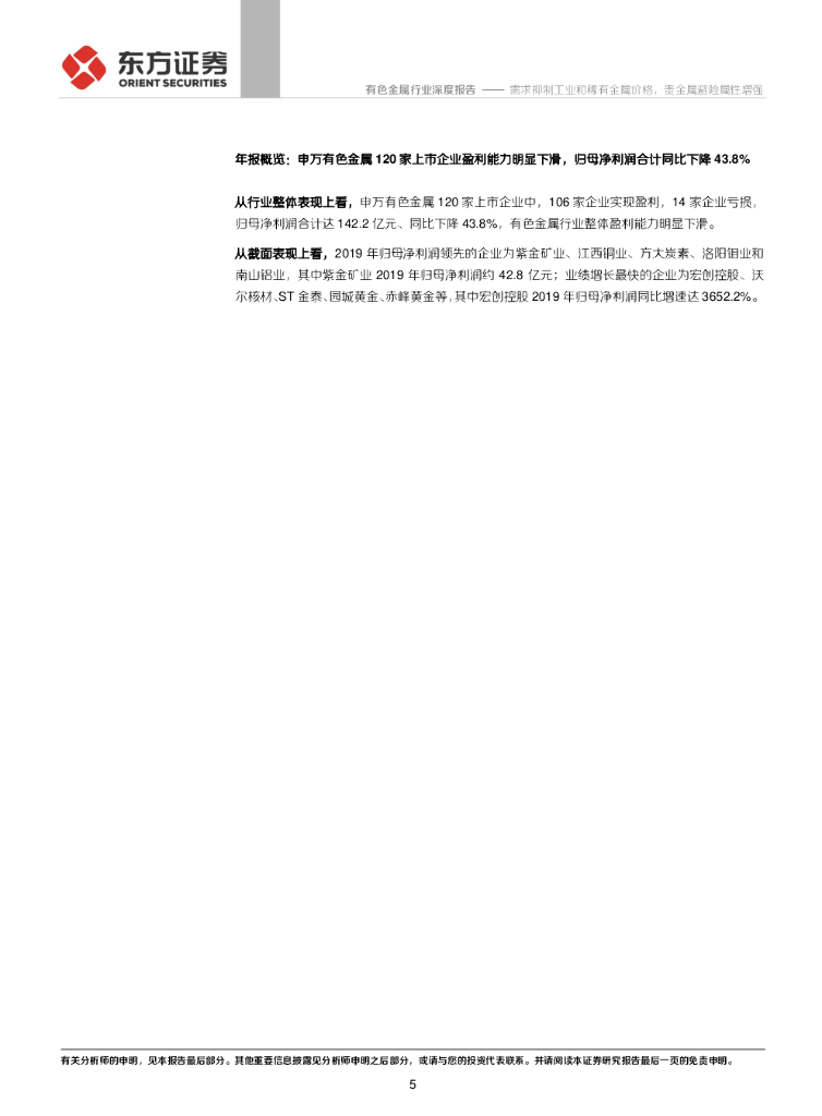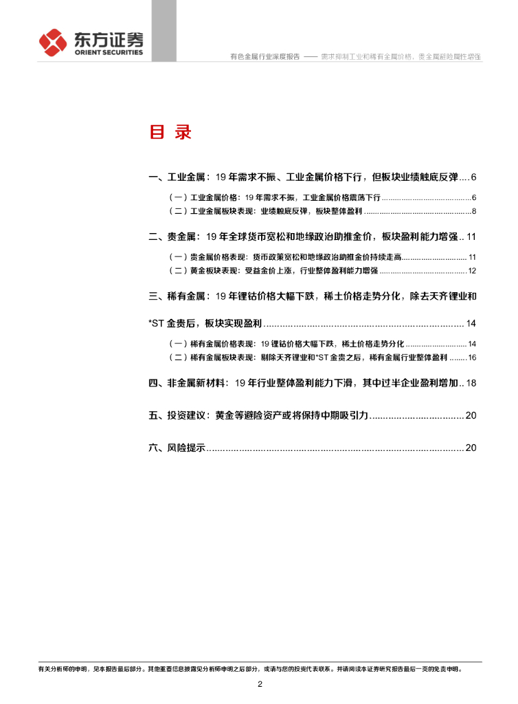 东方证券:有色金属行业2019年报综述:需求抑制工业和稀有金属价格,贵金属避险属性增强.pdf