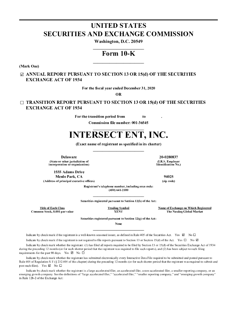 Intersect ENT Inc(XENT)2020财年年度报告(英文版).pdf