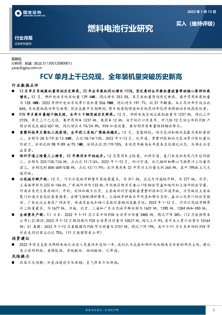 国金证券:燃料电池行业研究:FCV单月上千已兑现,全年装机量突破历史新高.pdf
