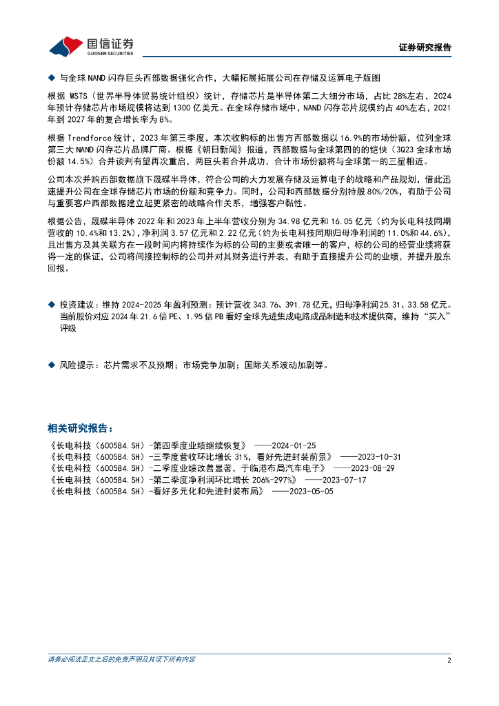 国信证券:长电科技(600584)-拟收购西部数据旗下“灯塔工厂”,拓展存储芯片布局.pdf
