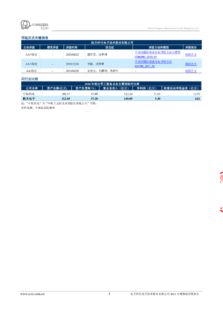 中诚信:航天时代电子技术股份有限公司2021年度跟踪评级报告.pdf