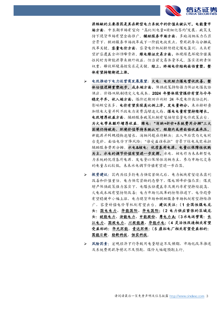 信达证券:电力行业2024年策略报告:电改加速推进下的电力行业投资机遇.pdf