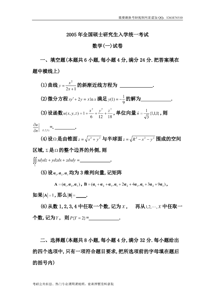 2005考研数一真题及解析.pdf