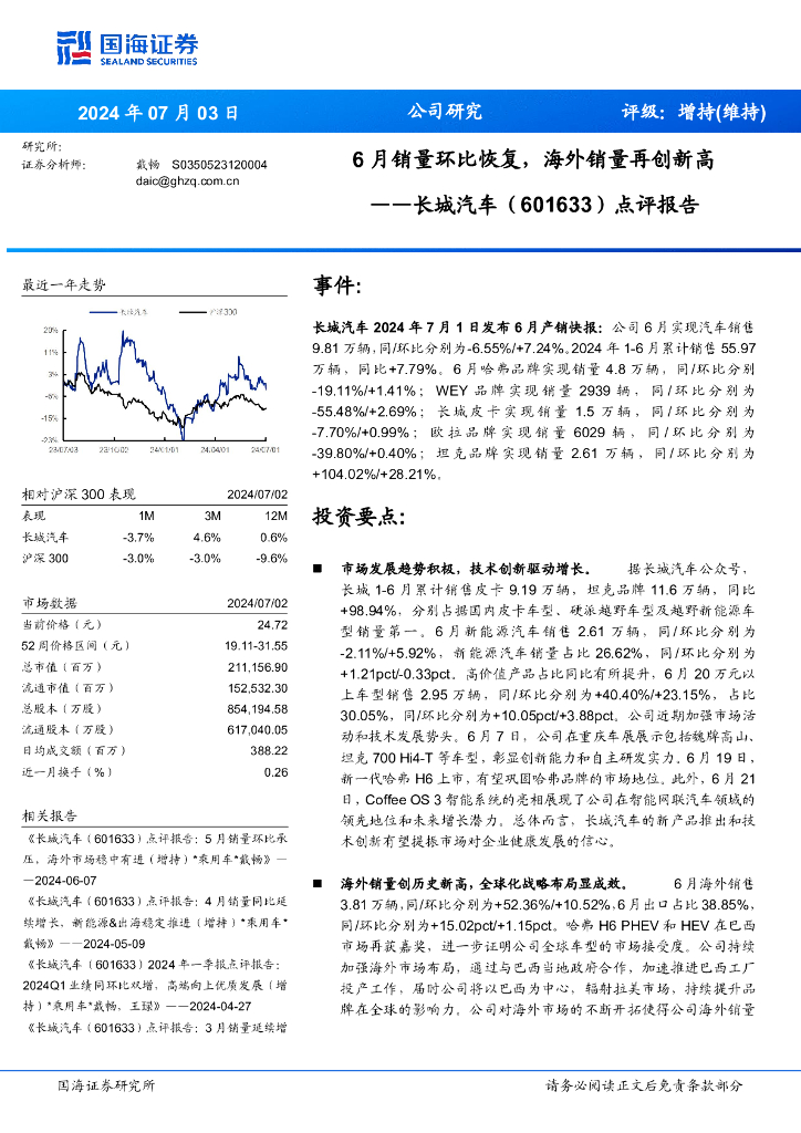 国海证券:长城汽车(601633)-点评报告:6月销量环比恢复,海外销量再创新高.pdf
