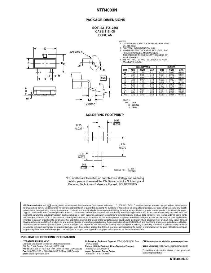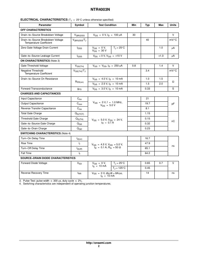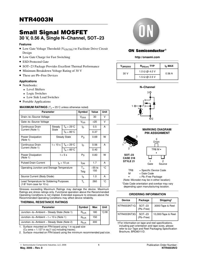 ON SEMICONDUCTOR NTR4003N Small Signal MOSFET 数据手册.pdf