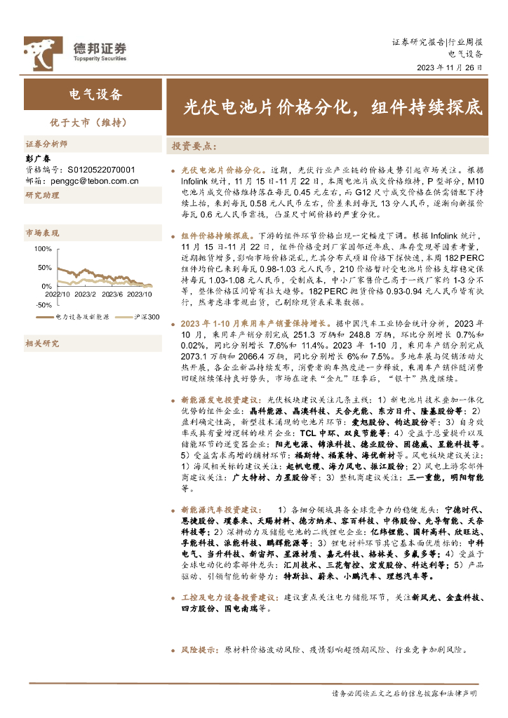 德邦证券:电气设备行业周报:光伏电池片价格分化,组件持续探底.pdf