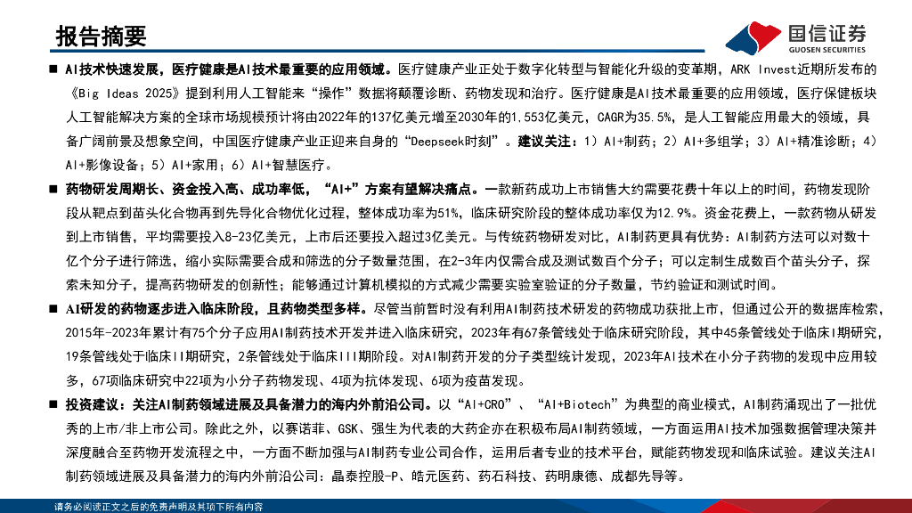 国信证券:医疗AI专题报告(一):制药篇:大鹏一日同风起,AI医疗启新篇.pdf