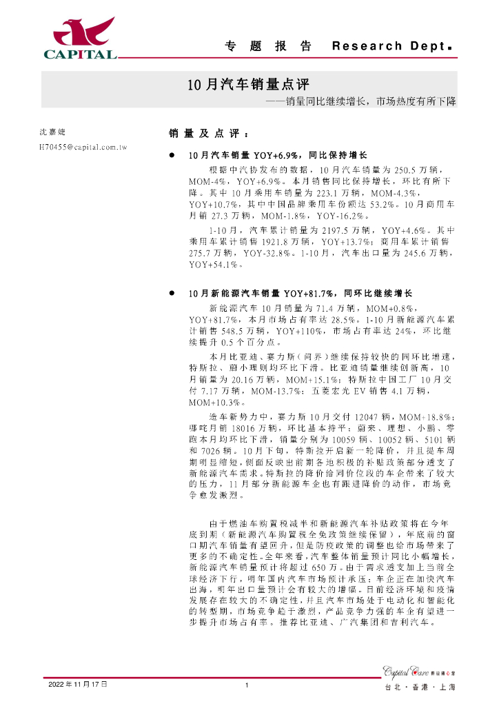 群益证券:10月汽车销量点评:销量同比继续增长,市场热度有所下降.pdf