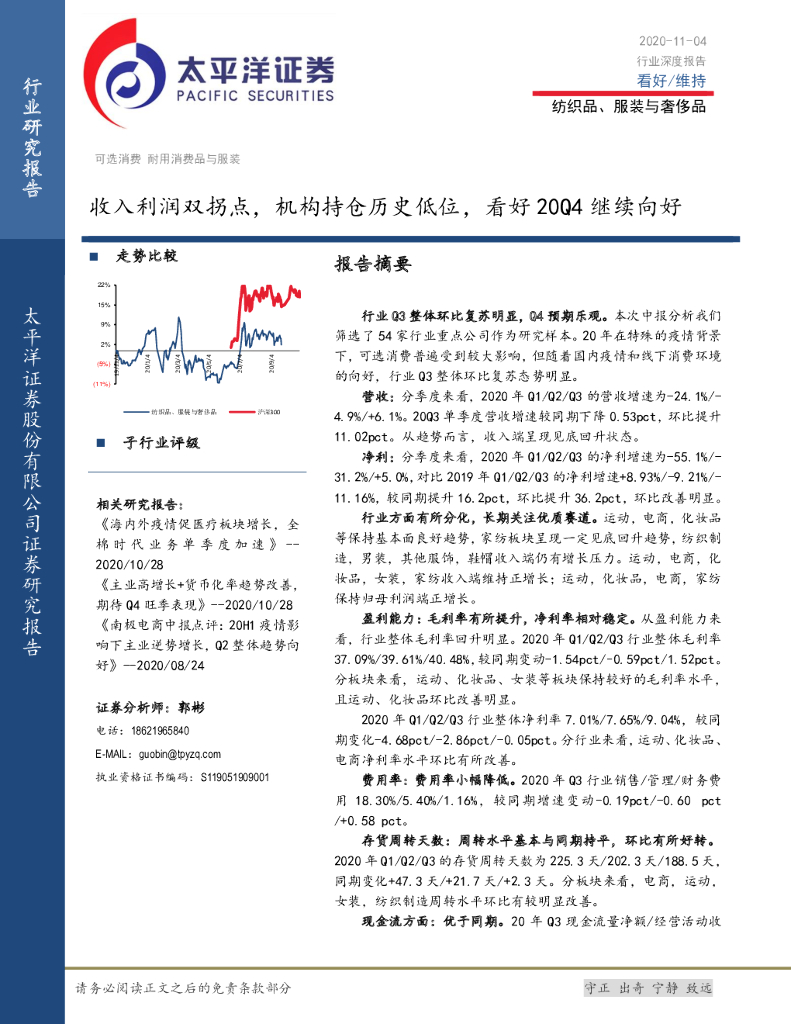 太平洋证券:纺织品、服装与奢侈品行业深度报告:收入利润双拐点,机构持仓历史低位,看好20Q4继续向好.pdf