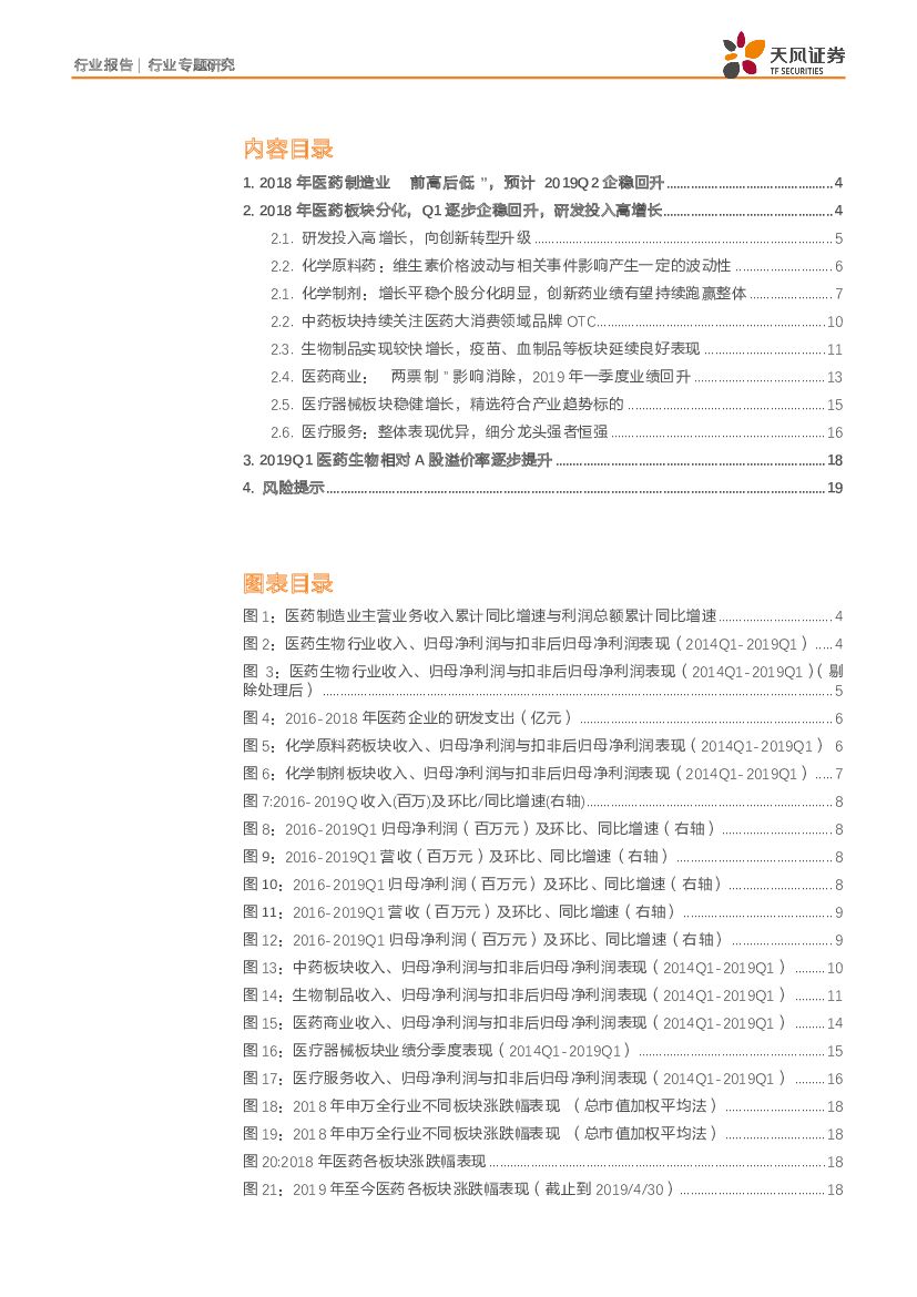 天风证券:医药生物行业专题研究:2018年医药板块分化,19年Q1逐步企稳回升.pdf