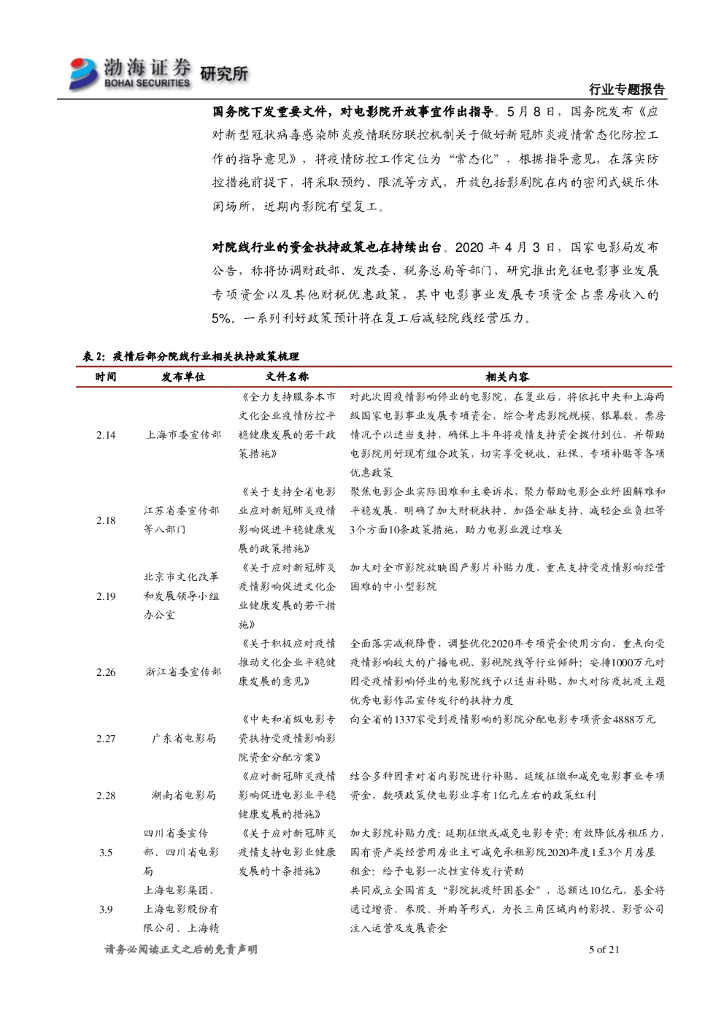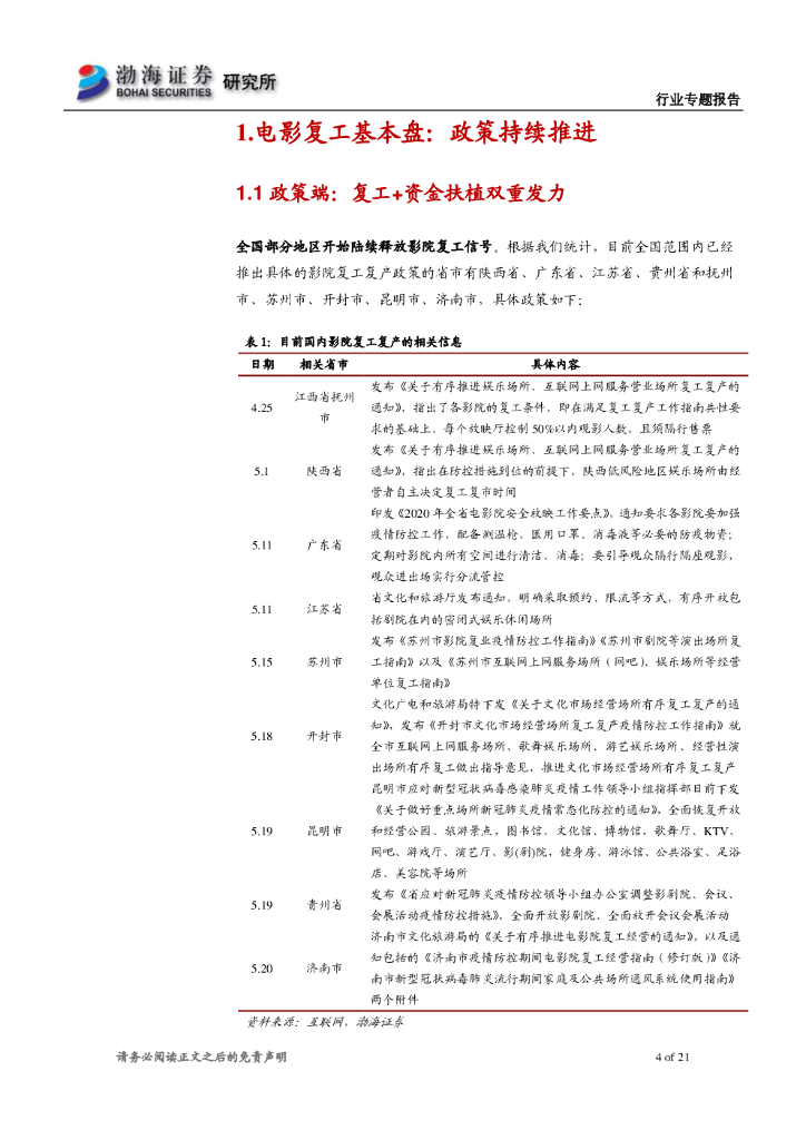 渤海证券:电影行业复工复产专题报告:政策持续发力,行业集中度逐步提升.pdf