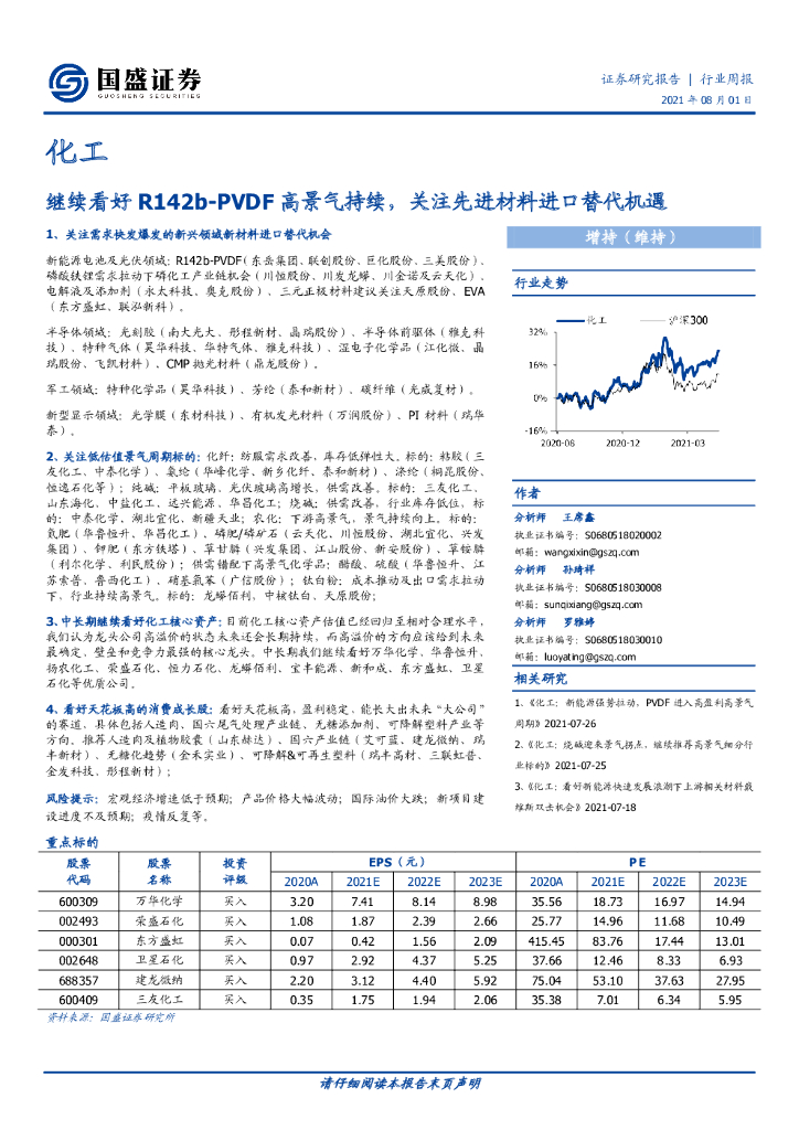 国盛证券:化工行业周报:继续看好R142b-PVDF高景气持续,关注先进材料进口替代机遇.pdf