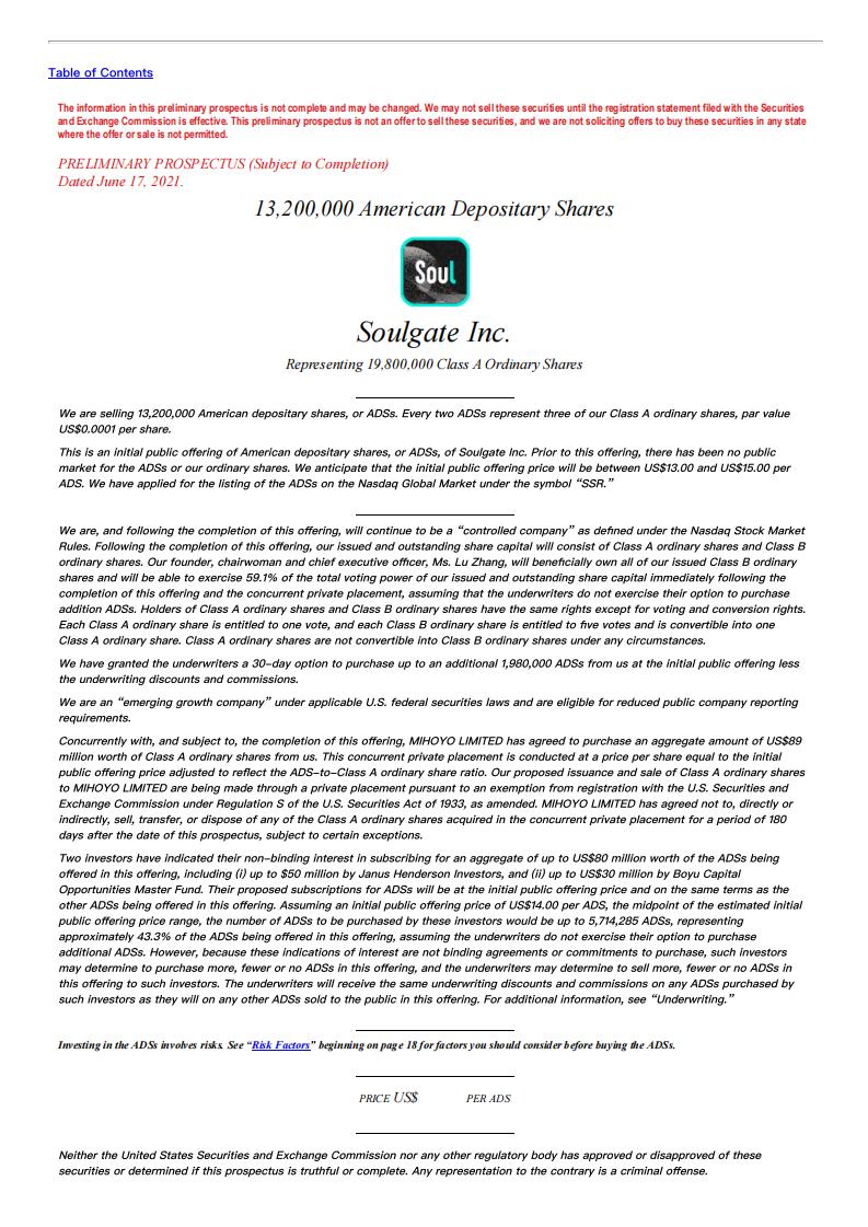 社交APP平台Soul赴美IPO上市招股书:腾讯是其最大外部股东.pdf