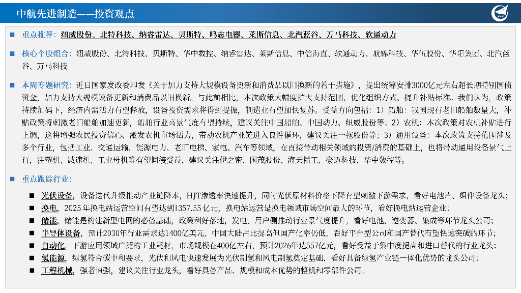 中航证券:先进制造行业周报:3000亿加码设备更新和以旧换新,船舶、农机、通用设备等方向受益.pdf
