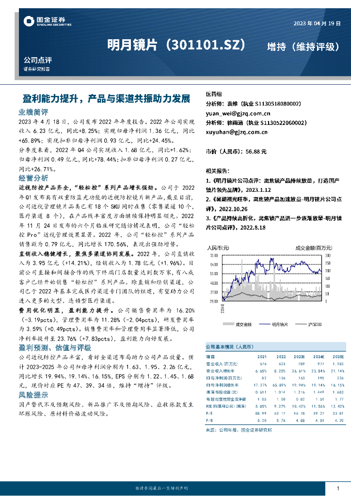 国金证券:明月镜片(301101)-盈利能力提升,产品与渠道共振助力发展.pdf
