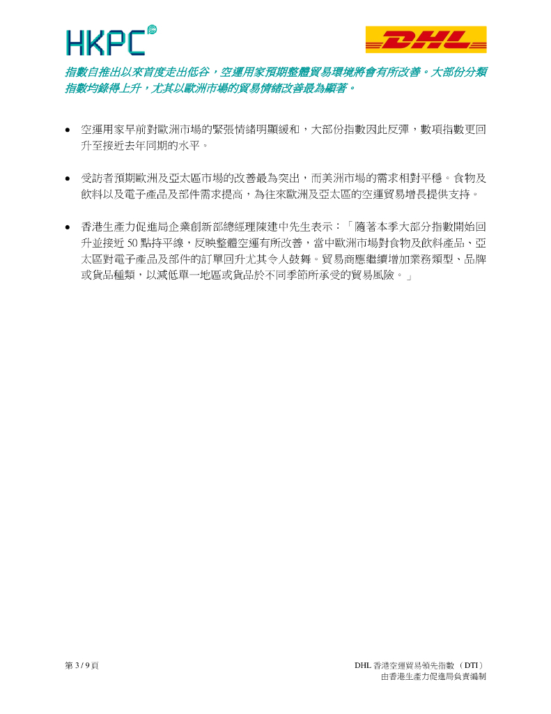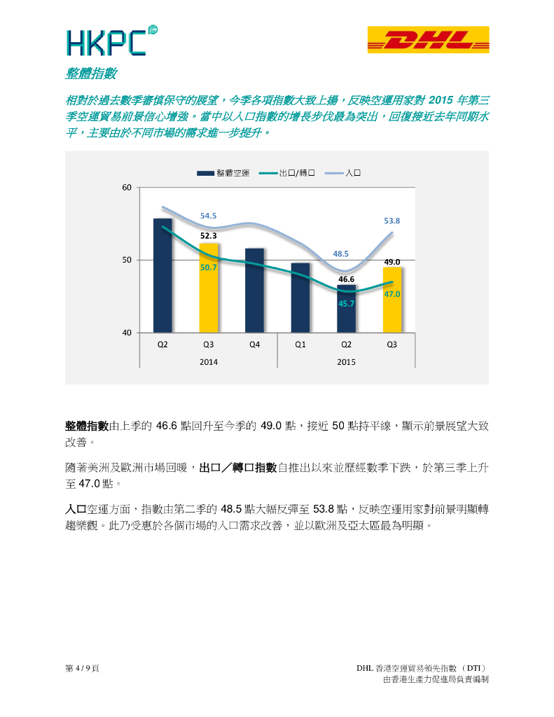 香港生产力促进局:2015年第三季度DHL香港空运贸易领先指数(DTI)报告(繁体版).pdf