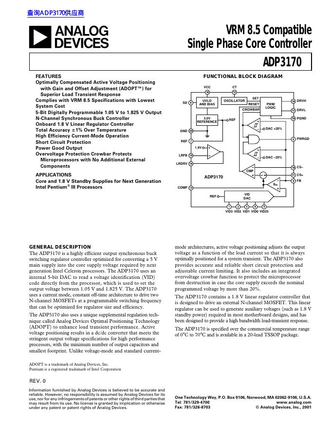 ANALOG DEVICES ADP3170 VRM 8.5 Compatible Single Phase Core Controller 数据手册ANALOG DEVICES ADP3170 VRM 8.5 Compatible Single Phase Core Controller 数据手册ANALOG DEVICES ADP3171 Synchronous Buck Controller with Dual Linear Regulator Controllers 数据手册ANALOG DEVI.pdf