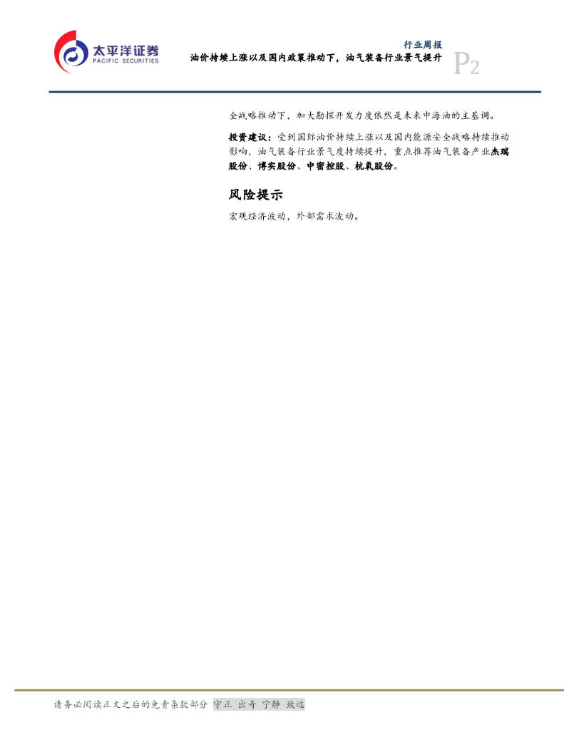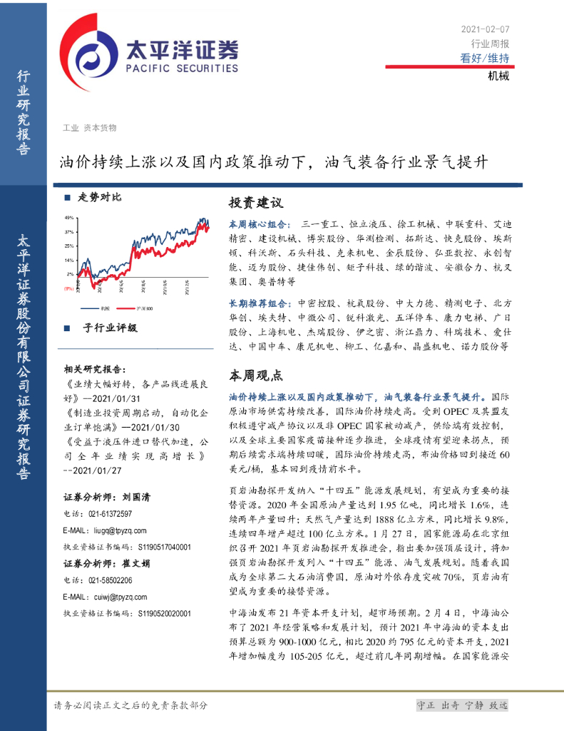 太平洋证券:机械行业周报:油价持续上涨以及国内政策推动下,油气装备行业景气提升.pdf