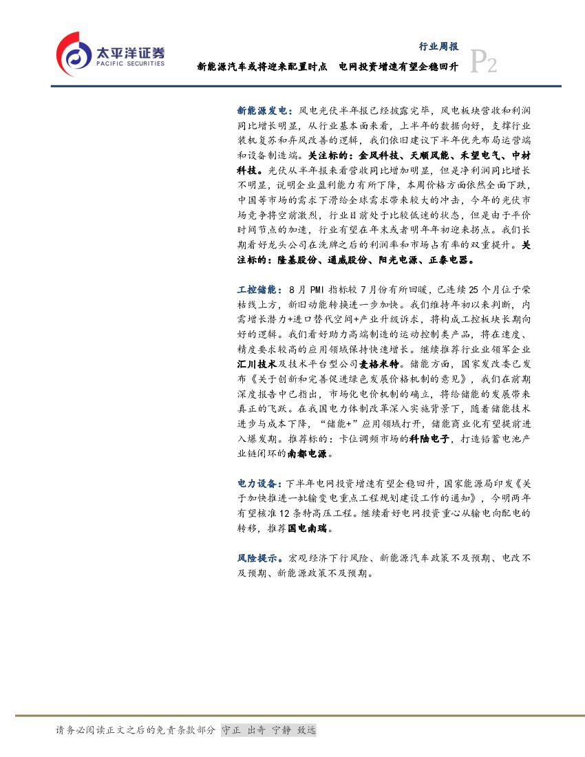 太平洋证券:电气设备行业周报:新能源汽车或将迎来配置时点 电网投资增速有望企稳回升.pdf