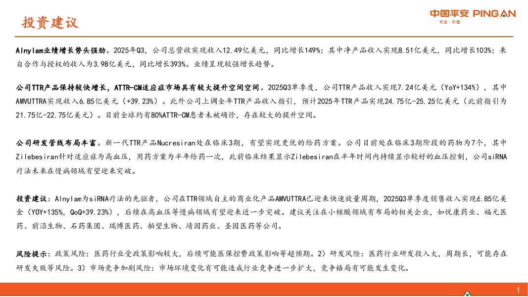 中国平安证券:海外小核酸行业动态跟踪——Alnylam-业绩增长势头强劲,研发管线布局丰富.pdf